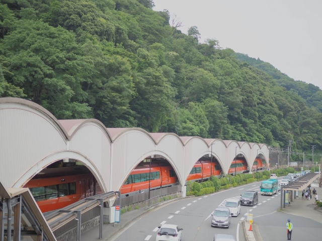 小田急ロマンスカー「GSE(展望席のある赤い車体)」で出発。