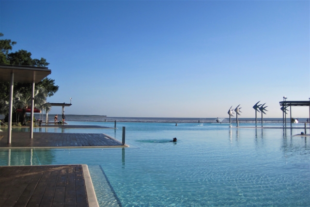 海沿いの公共プール。着替えスペースやシャワーも完備。ホテルのチェックインまでここで「海外の朝」を浴びながら仮眠&リラックス。